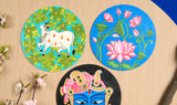 3. Explore scenes from Lord Krishna's life on vibrant MDF canvases.